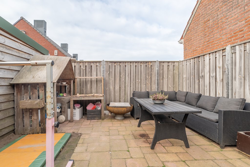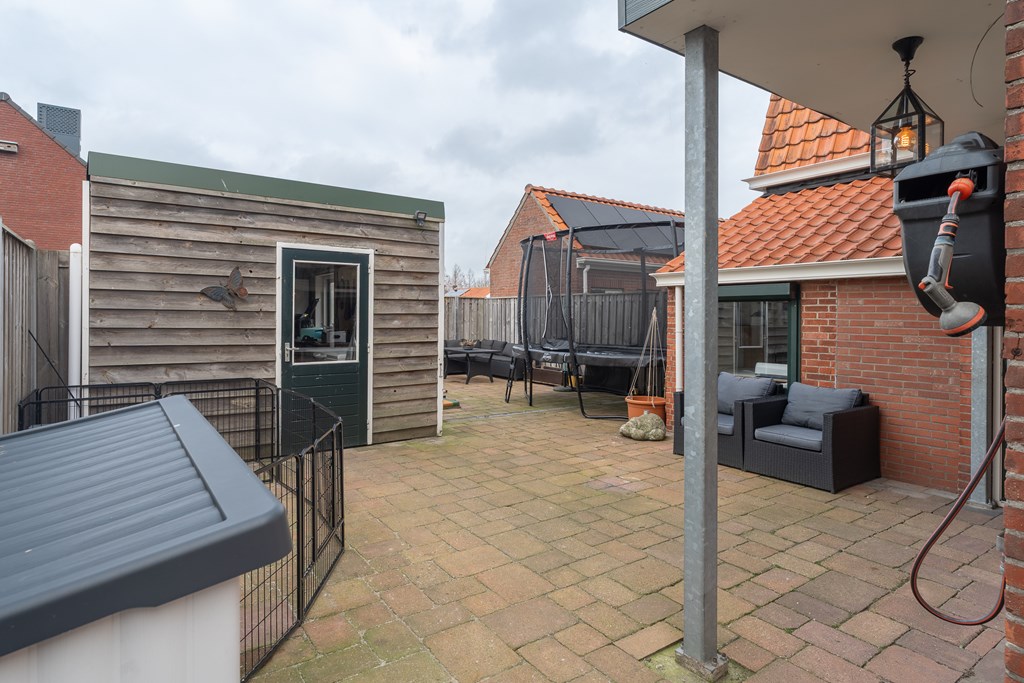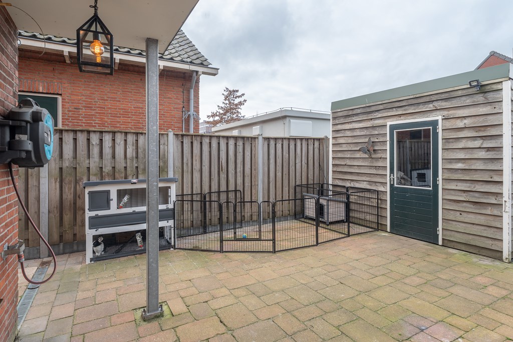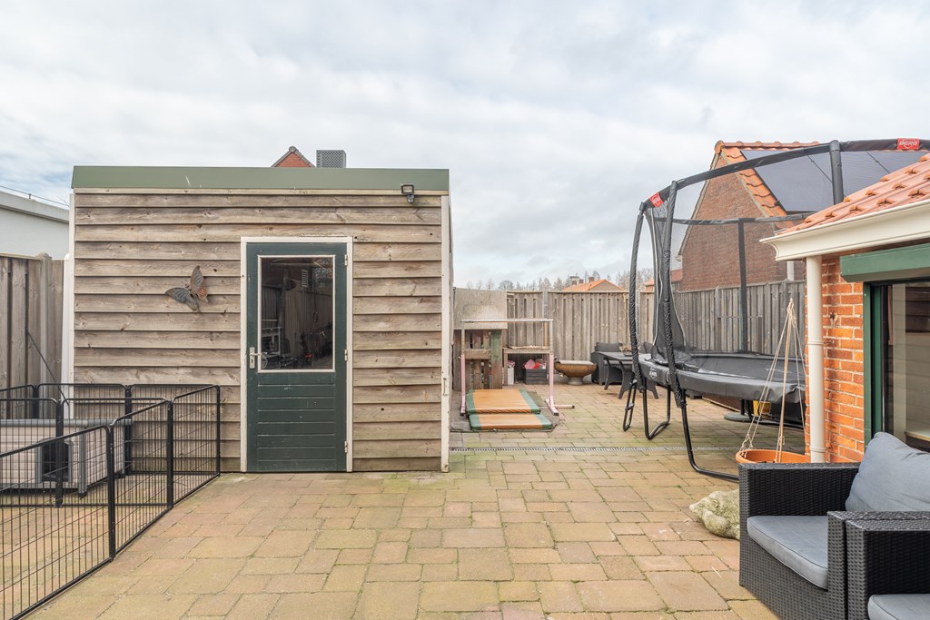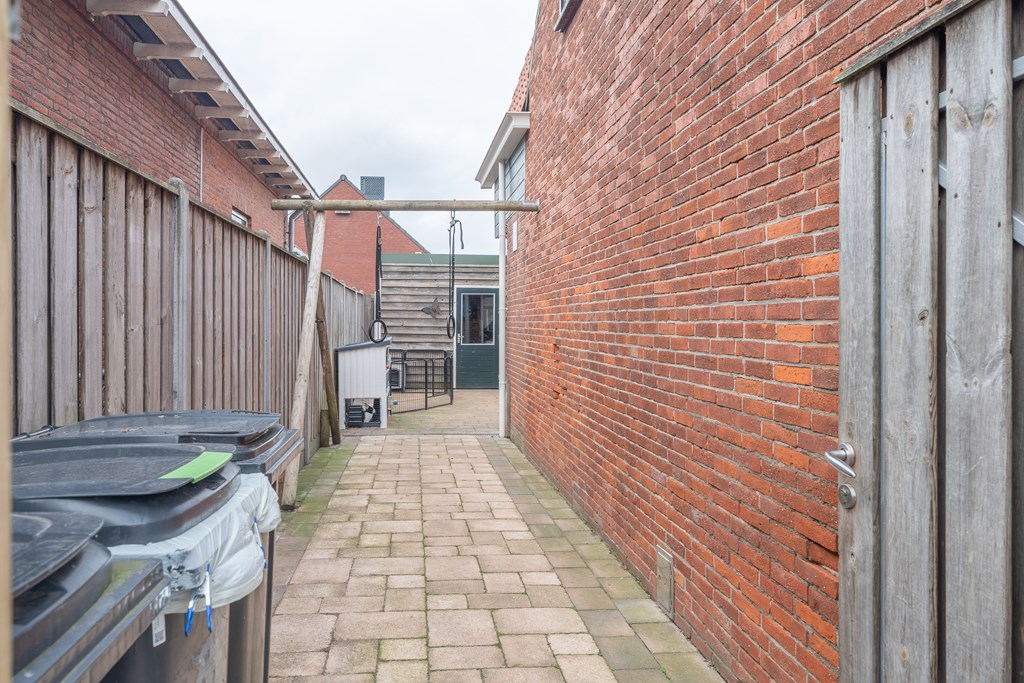 De achtertuin is onderhoudsvriendelijk ingericht en biedt voldoende ruimte voor een zitgedeelte. In de tuin bevindt zich een vrijstaande berging, ideaal voor fietsen en opslag. Daarnaast beschikt de woning over een achterom, wat het dagelijks gebruik extra praktisch maakt.