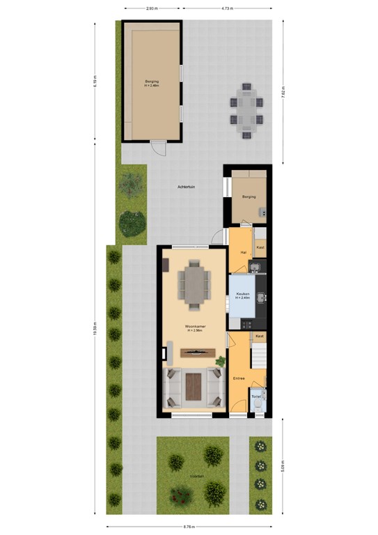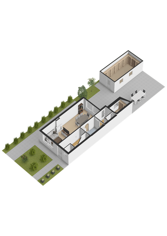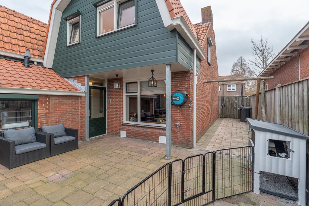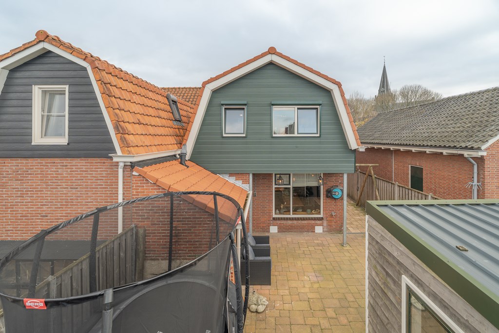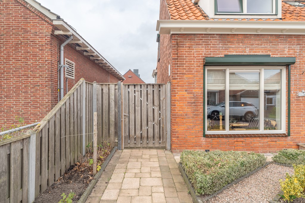 De achtertuin is onderhoudsvriendelijk ingericht en biedt voldoende ruimte voor een zitgedeelte. In de tuin bevindt zich een vrijstaande berging, ideaal voor fietsen en opslag. Daarnaast beschikt de woning over een achterom, wat het dagelijks gebruik extra praktisch maakt.