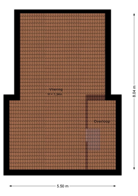 Via een vlizotrap is de vliering bereikbaar. Deze ruimte heeft een beperkte stahoogte (circa 1,34 m) en is geschikt voor veel extra bergruimte.