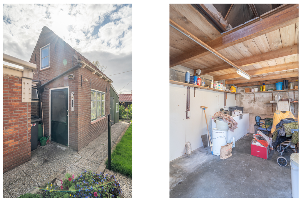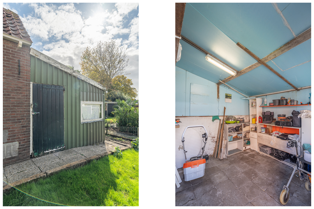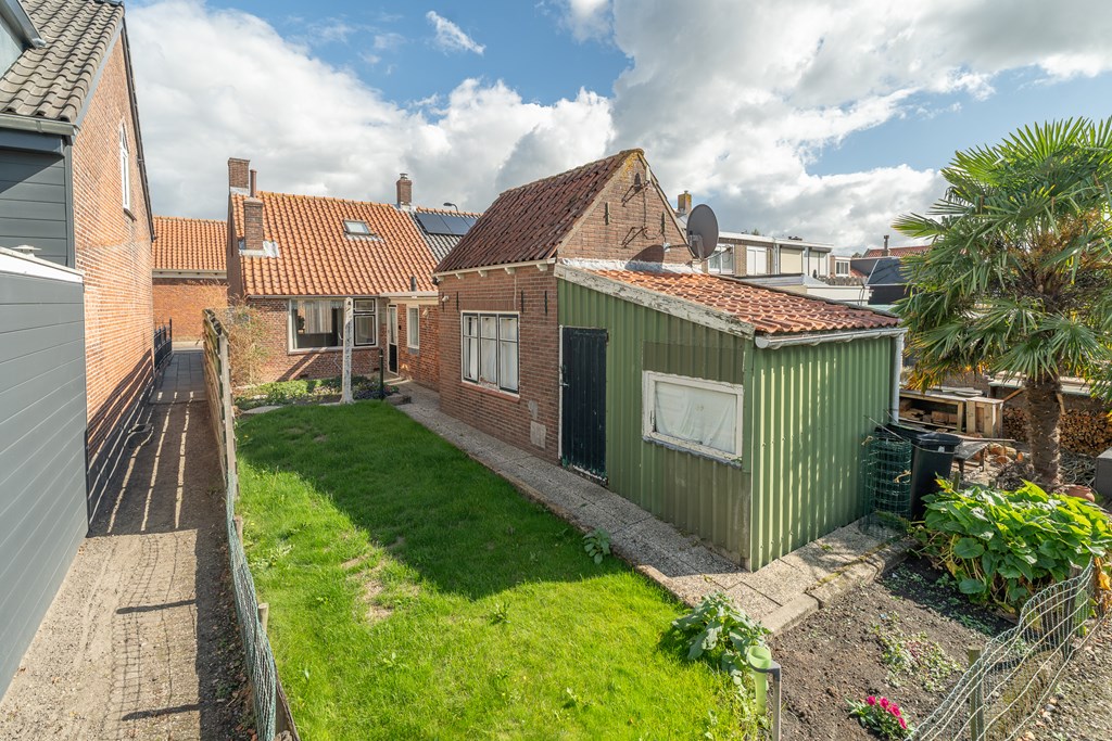 De woning beschikt over een verrassend diepe achtertuin en is bereikbaar via een achterom. Hier vindt u ook twee afzonderlijke schuren, die uitstekend te gebruiken zijn als berging of werk-/hobbyruimte.