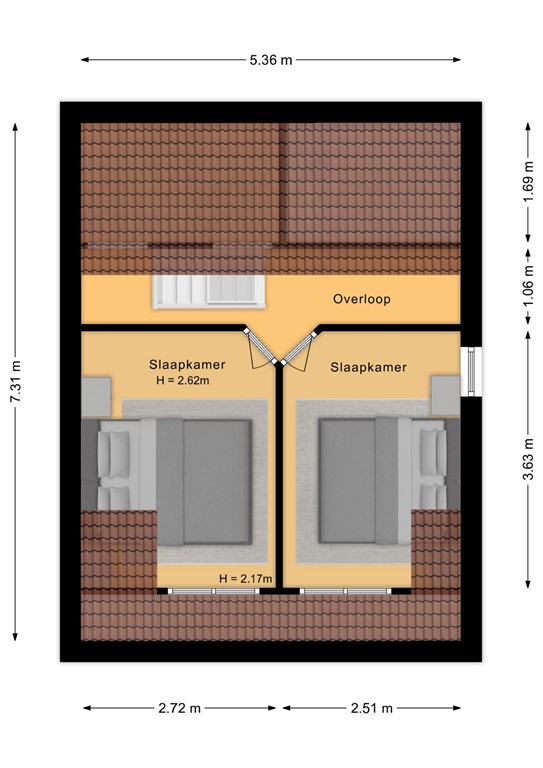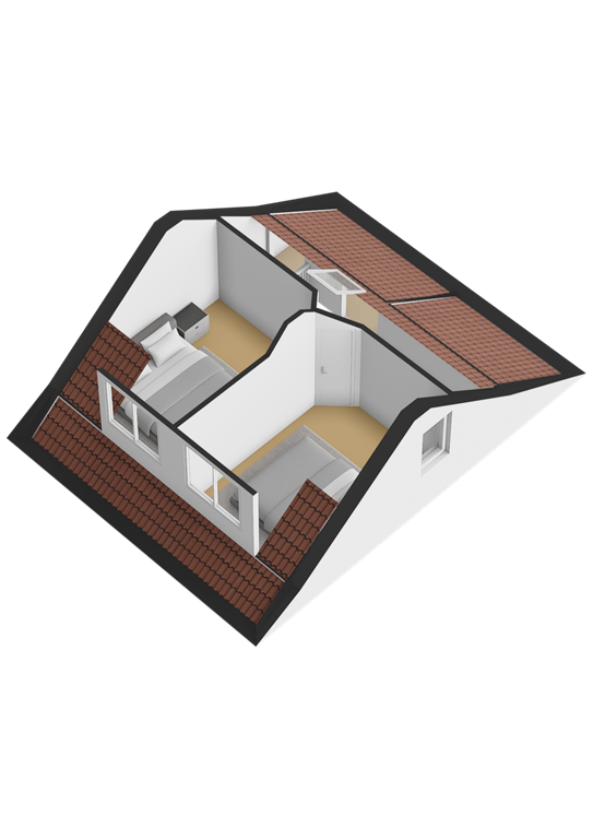 Op de verdieping vindt u de overloop en twee slaapkamers. Beide kamers hebben een goede maatvoering en beschikken over daglicht via de dakkapellen.