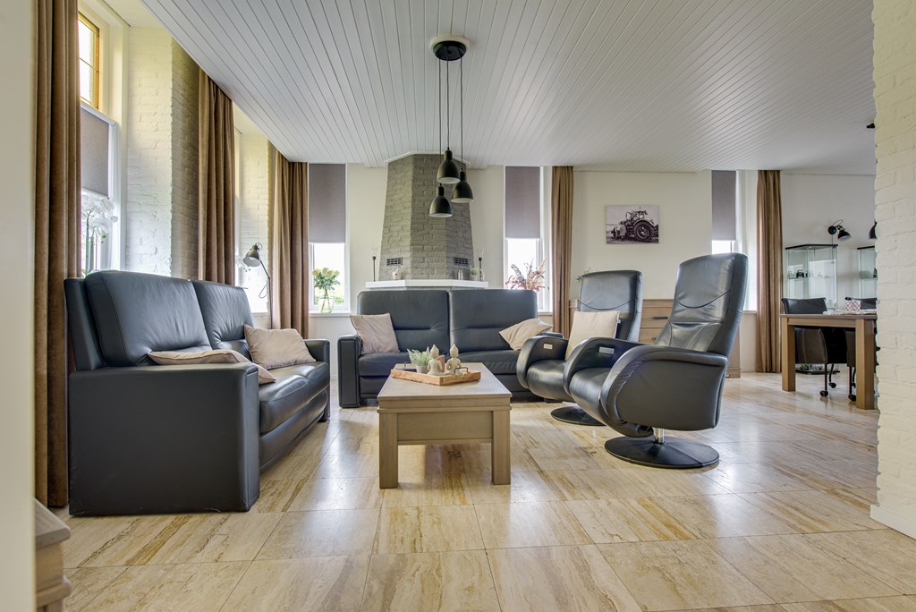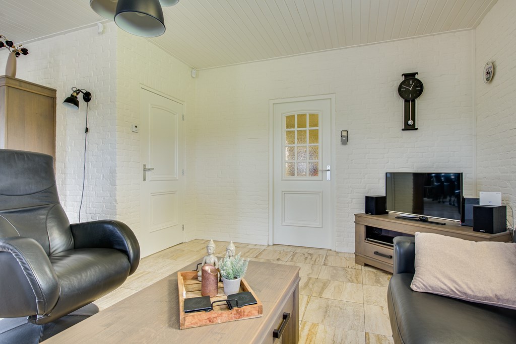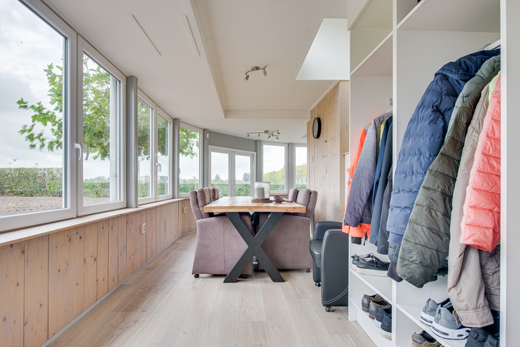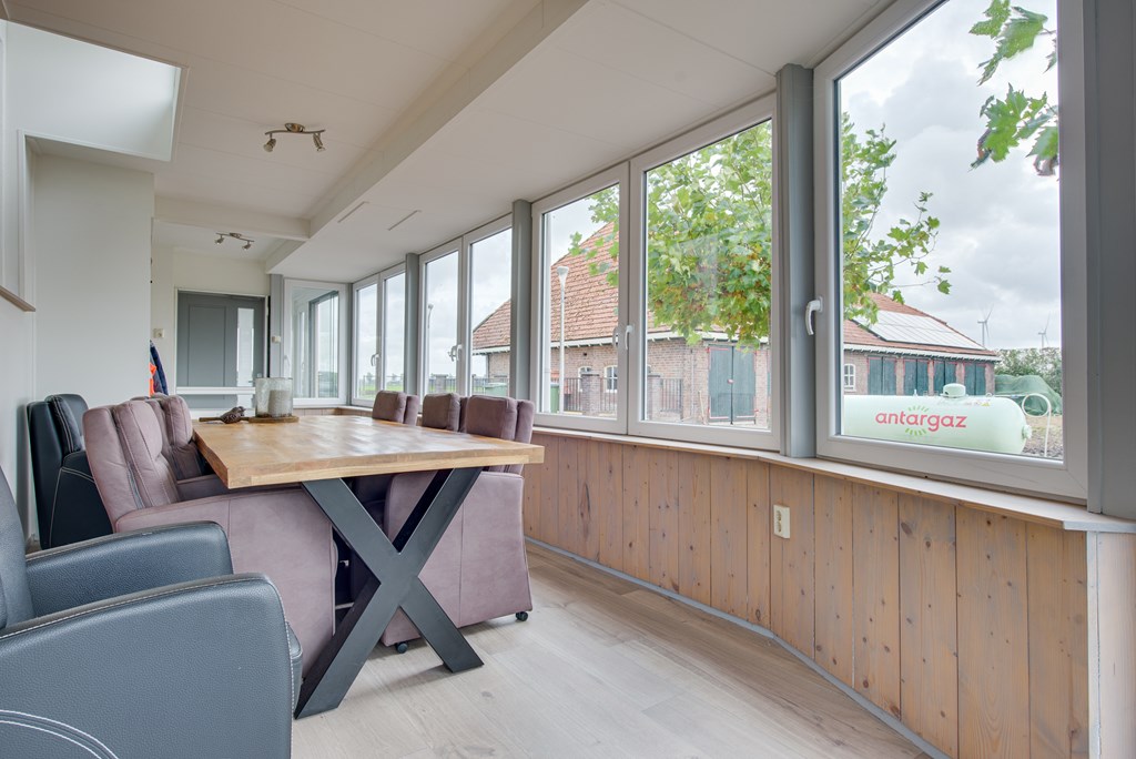 Aan de achterzijde van de woning ligt een zitkamer met openslaande deuren naar het terras en uitzicht over de diepe tuin. Hier ervaar je rust, ruimte en het echte buitenleven.
