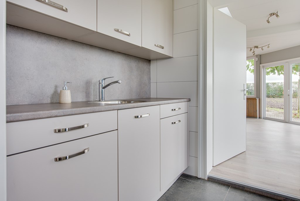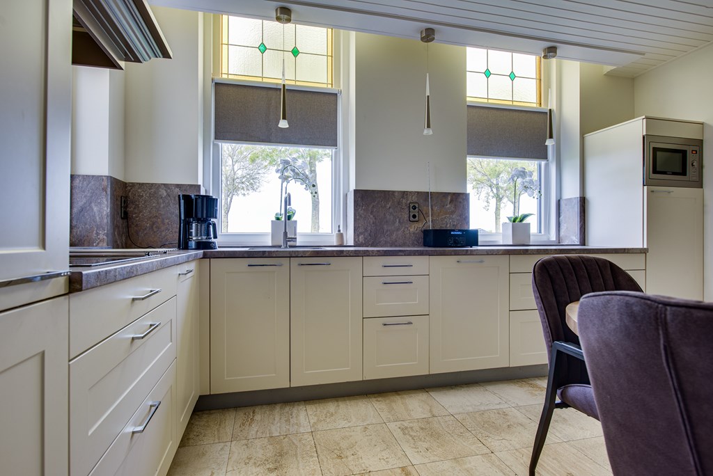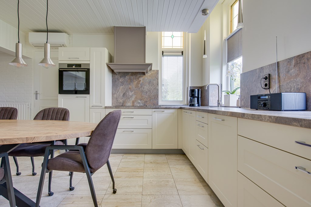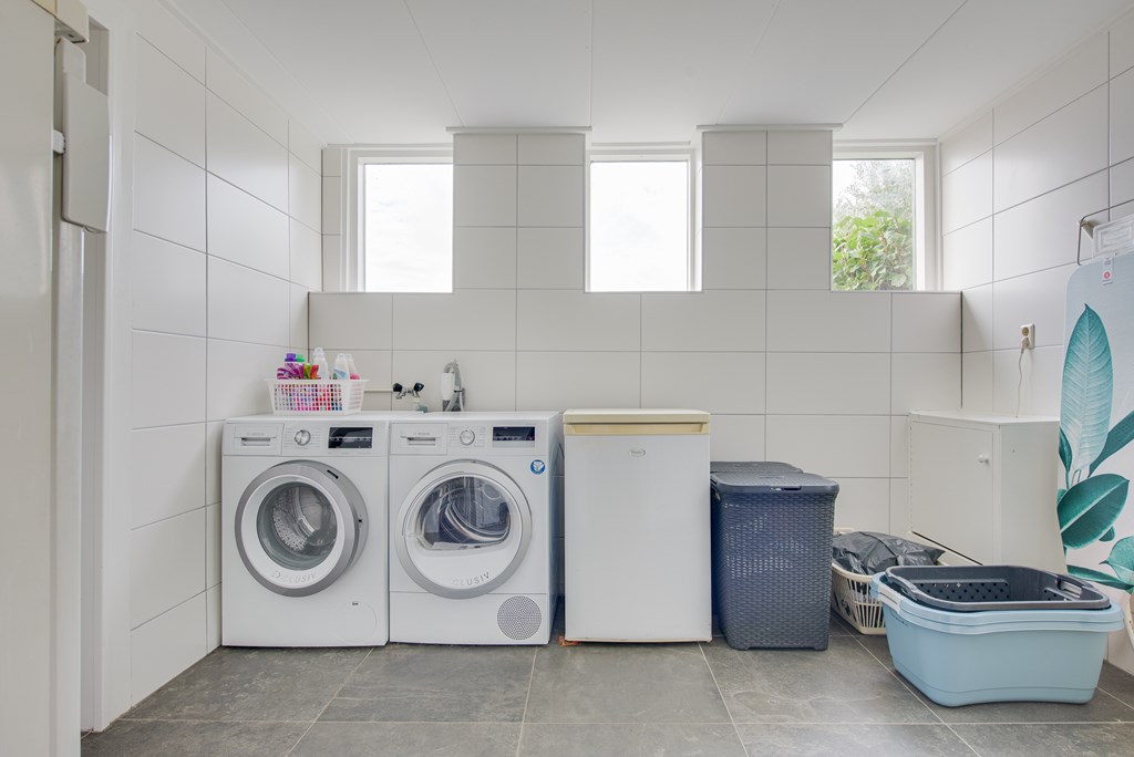 De keuken, centraal in het huis gelegen, is voorzien van moderne inbouwapparatuur en sluit aan op de bijkeuken met extra bergruimte en witgoedaansluitingen.