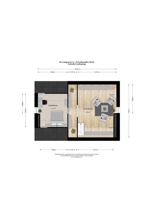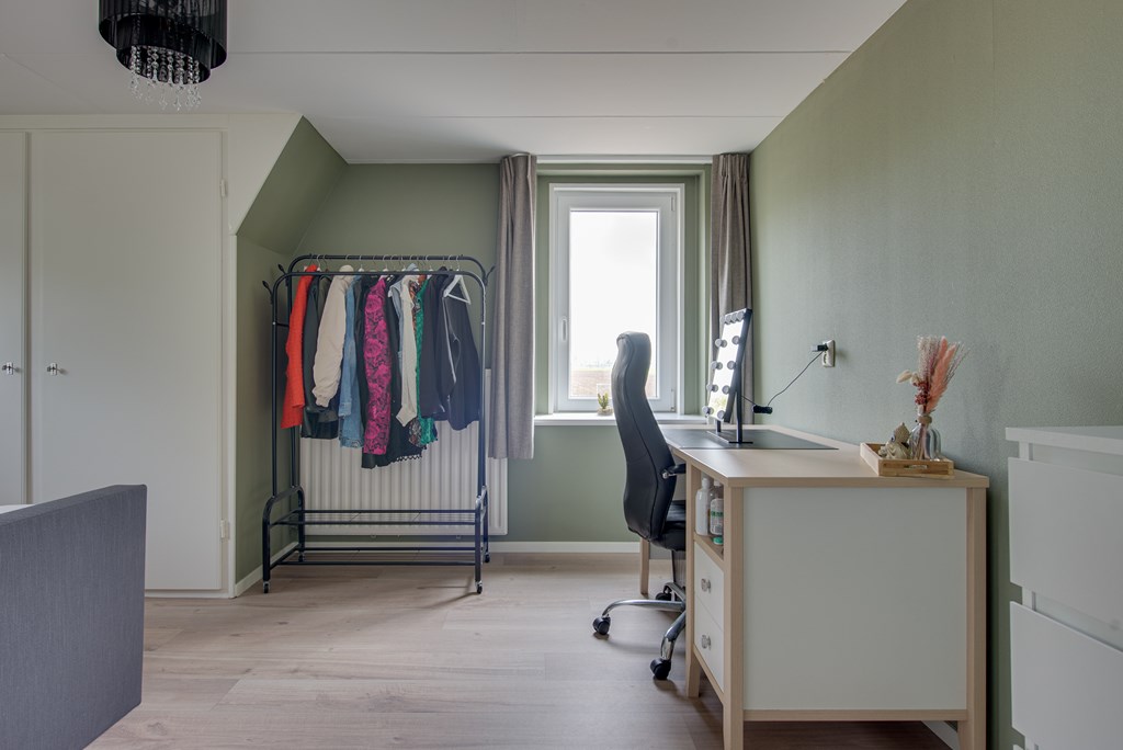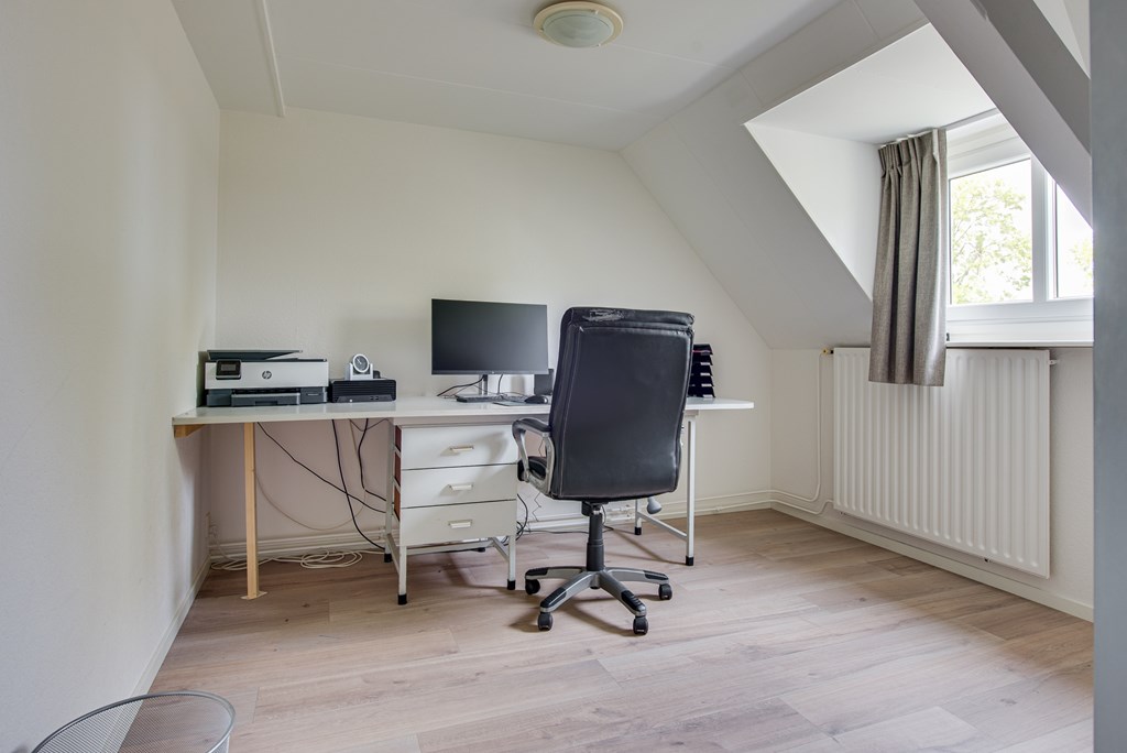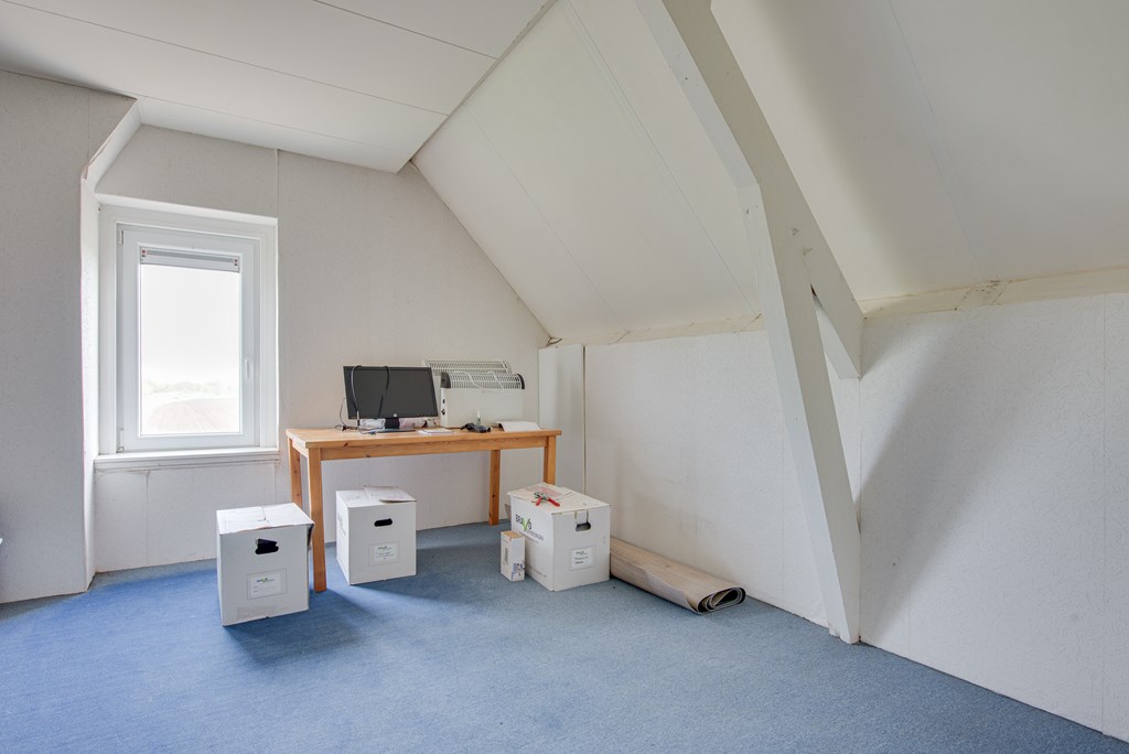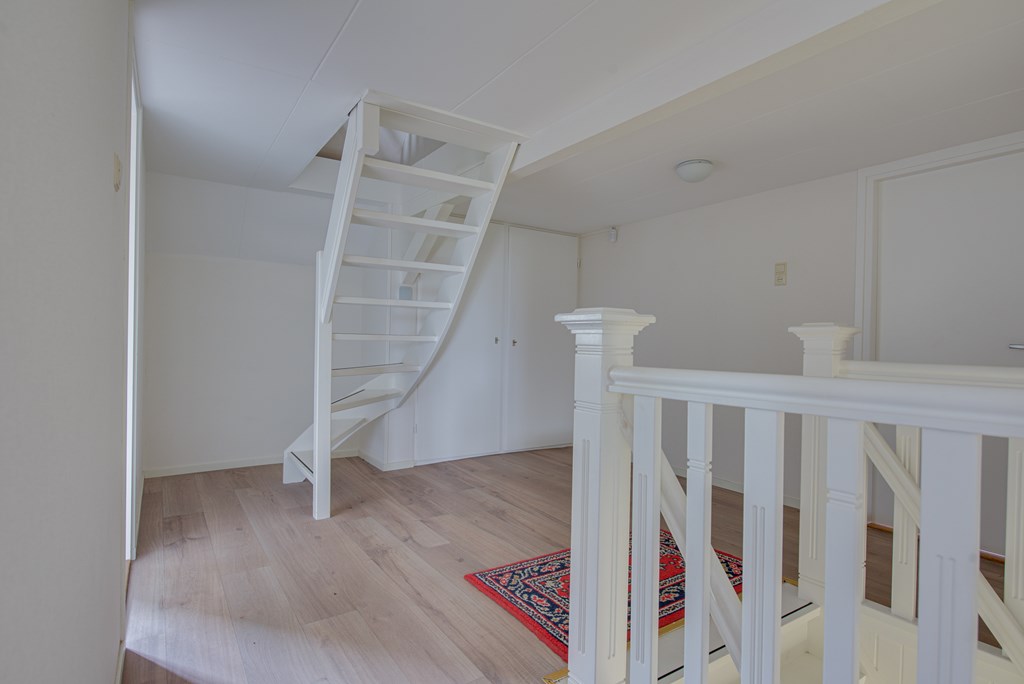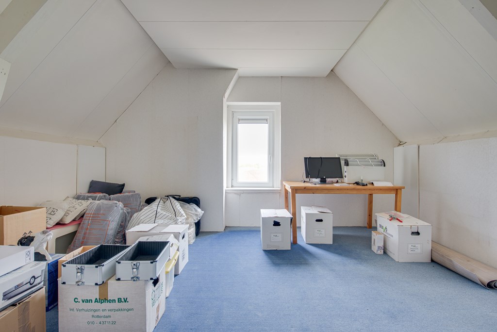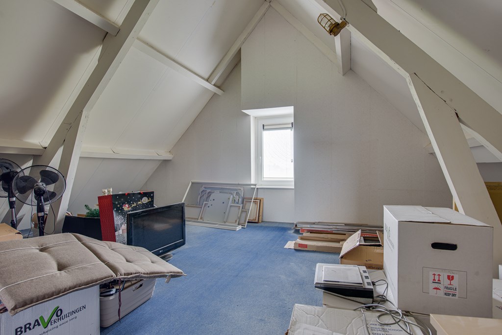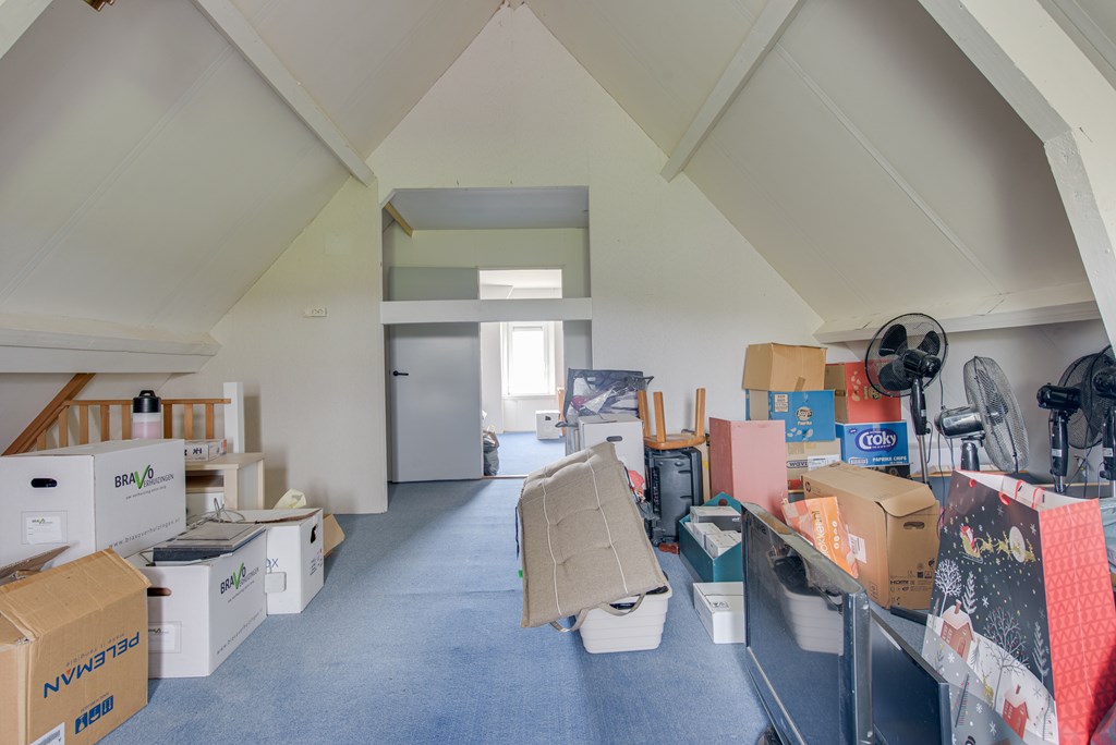 Via de vaste trap bereik je de tweede verdieping met een ruime slaapkamer en een extra zolderkamer. Dankzij de dakramen is er volop lichtinval. Deze verdieping is ideaal voor een werkplek, logeerkamer of hobbyruimte en biedt bovendien extra bergruimte.