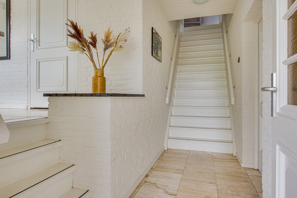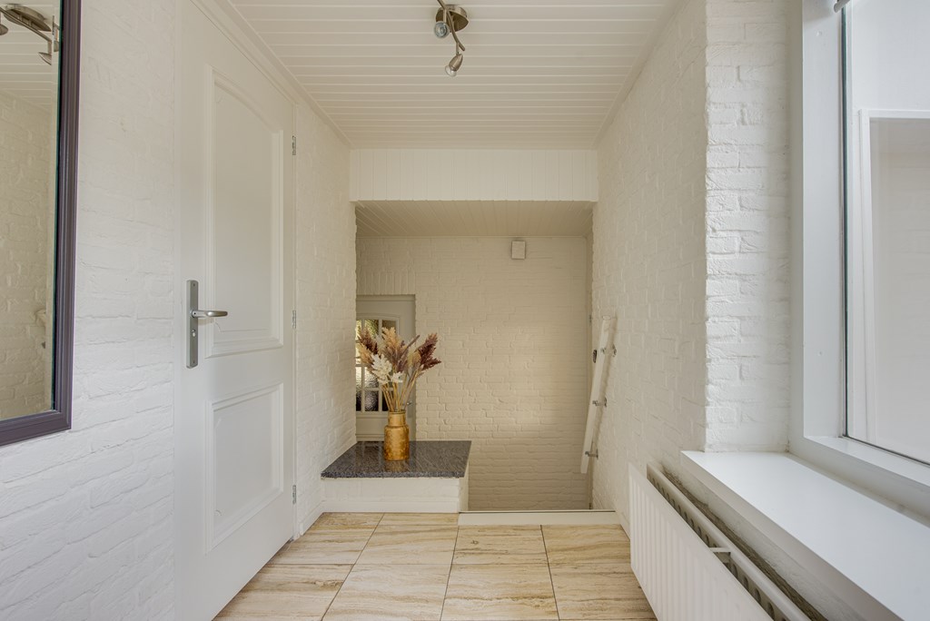 De woning verwelkomt je in een ruime hal die toegang geeft tot de verschillende leefruimtes.