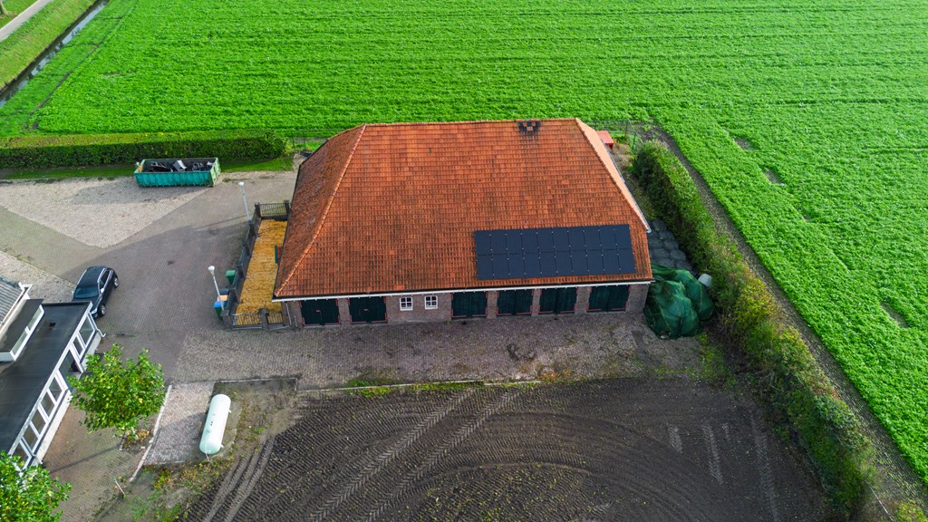 De 42 zonnepanelen, geplaatst op de schuur, dragen bij aan de uitstekende energieprestatie en lage energielasten van de woning.