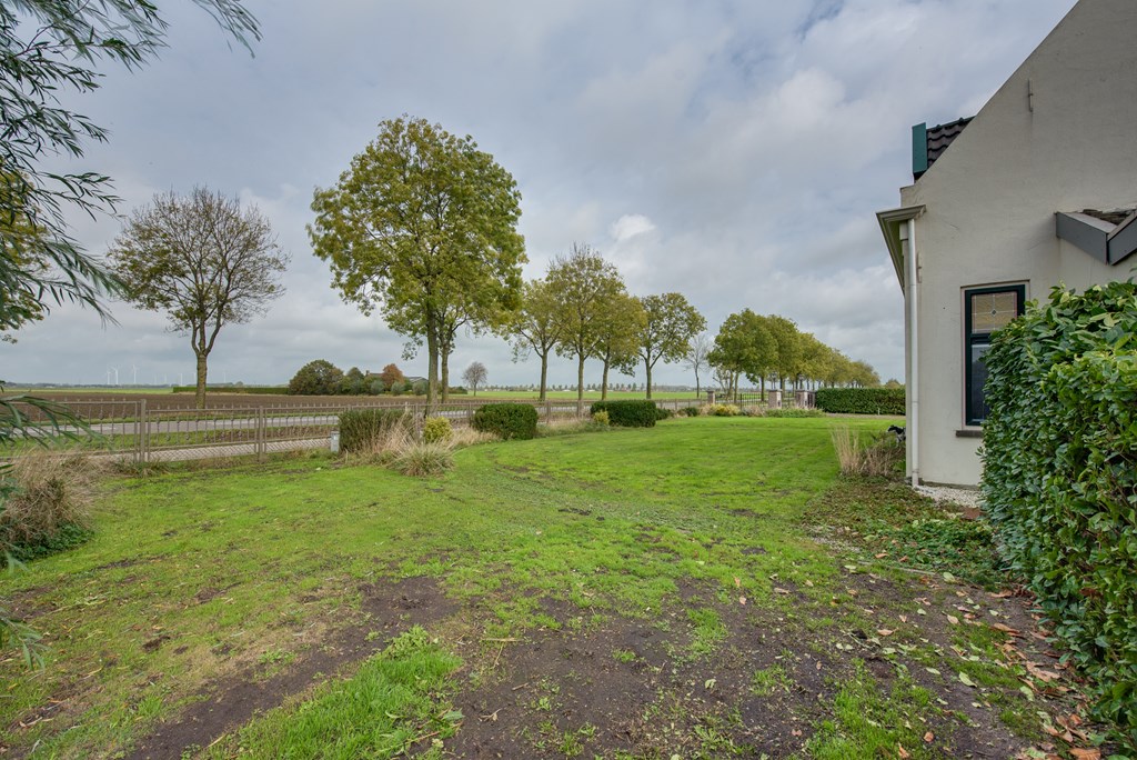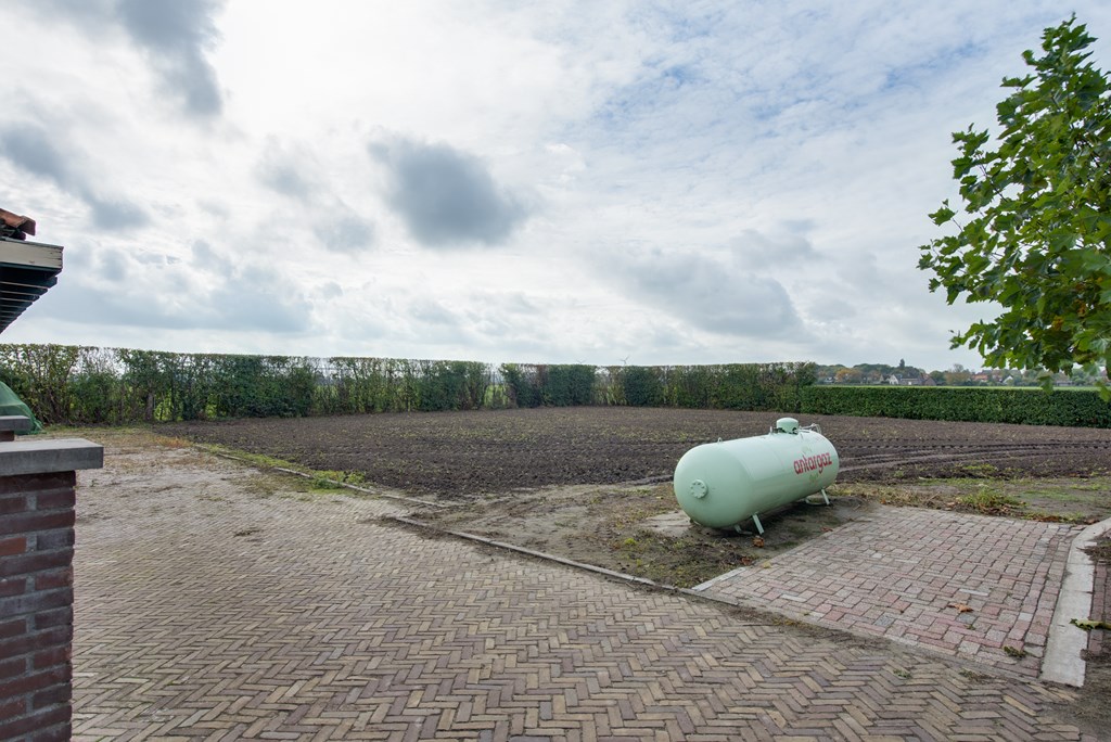 De tuin is fraai aangelegd met verschillende terrassen, gazon en beplanting. Dankzij de ligging rondom de woning geniet je op elk moment van de dag van zon of schaduw. Het vrije uitzicht over de landerijen zorgt voor een gevoel van rust en vrijheid.