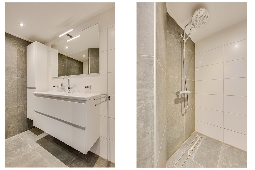 Op de begane grond bevindt zich tevens de moderne badkamer, volledig vernieuwd in 2023 en voorzien van een inloopdouche, wastafelmeubel en toilet. Ook de cv-installatie is in 2023 vernieuwd.