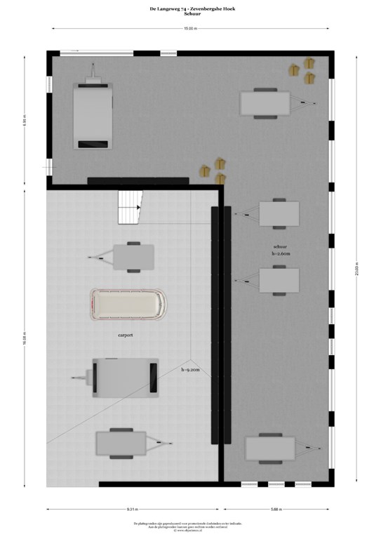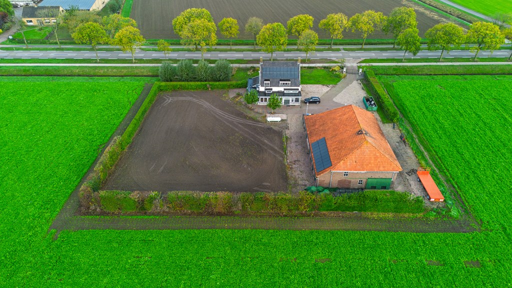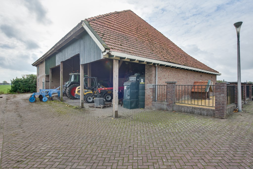 Op het perceel staat een royale vrijstaande schuur met carport. Deze biedt ruimte voor meerdere voertuigen, opslag of werkplaatsactiviteiten en past perfect bij het landelijke karakter van de woning.
