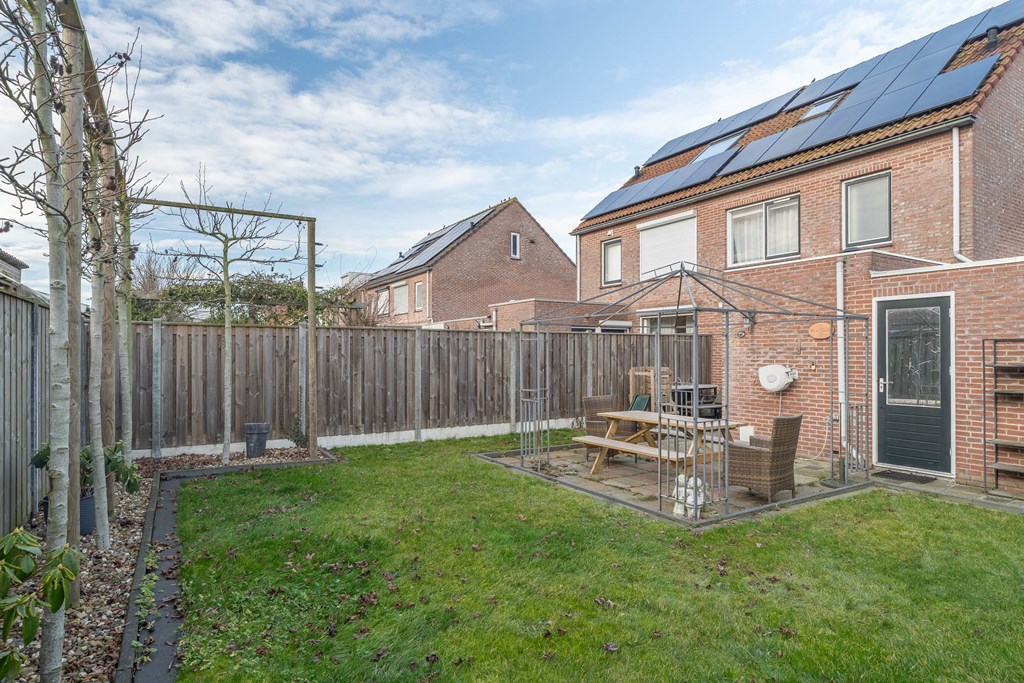 De achtertuin is ruim opgezet en ligt op het zuidwesten, waardoor je hier volop van de middag- en avondzon kunt genieten. De tuin biedt voldoende ruimte voor een terras, speelplek of loungehoek en sluit praktisch aan op de garage en berging.
