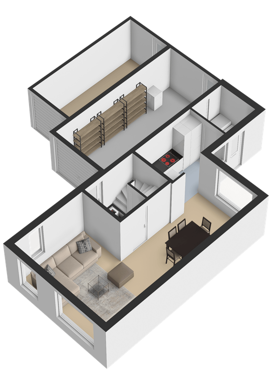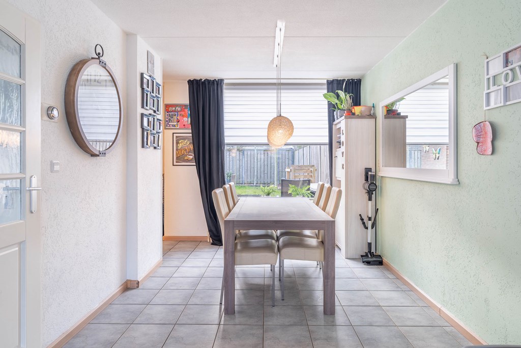 De woonkamer bevindt zich aan de voorzijde van de woning en is heerlijk licht dankzij de grote raampartijen. Aan de achterzijde bevindt zich de ruime leefruimte met voldoende plaats voor een grote eettafel. Door de opzet van de ruimte staat deze in prettige verbinding met de keuken.