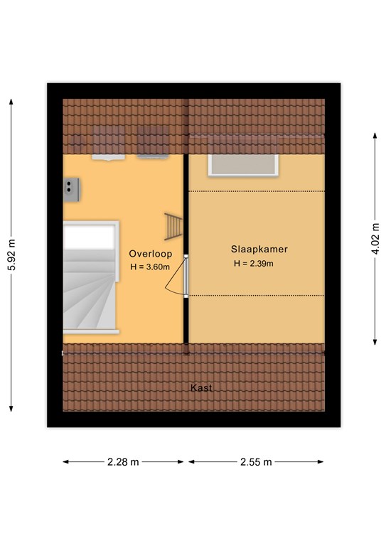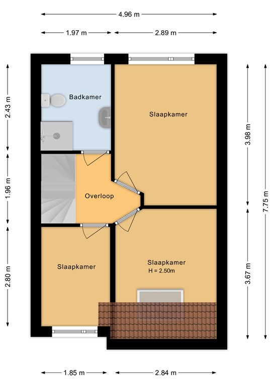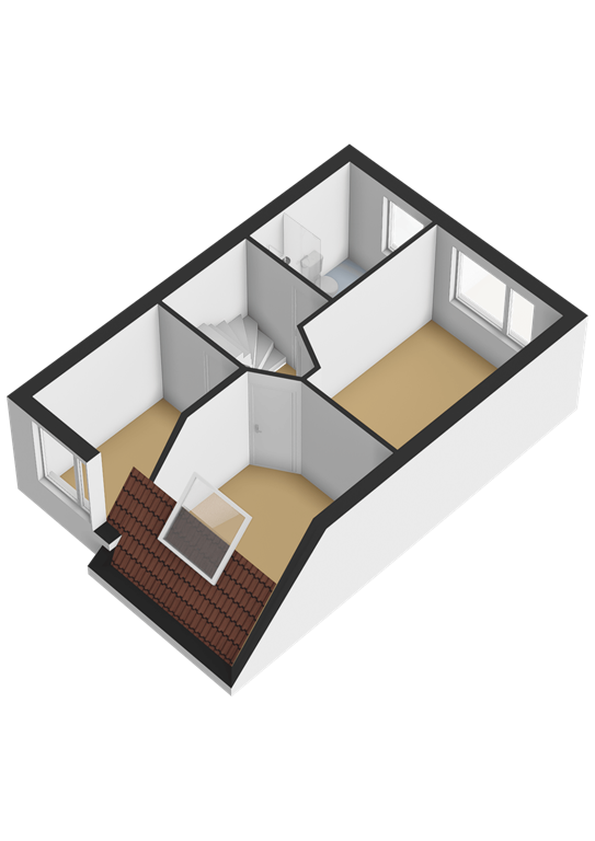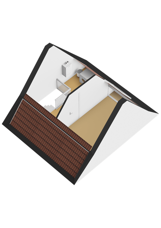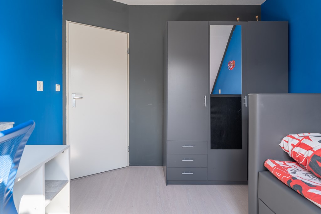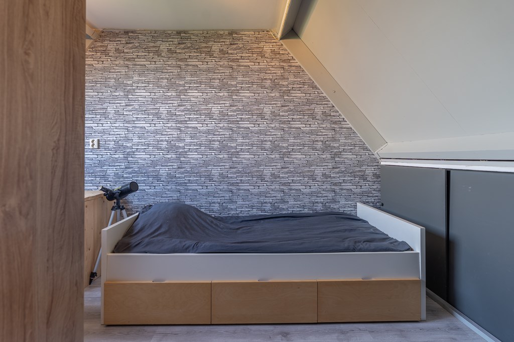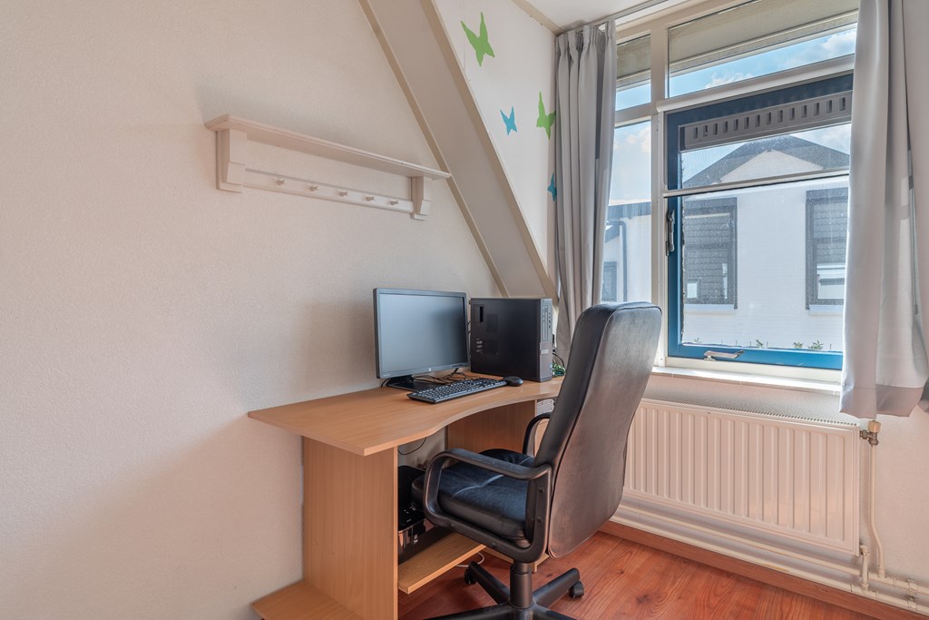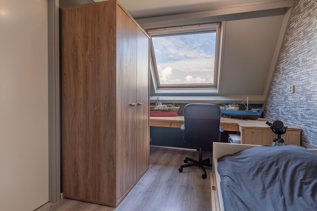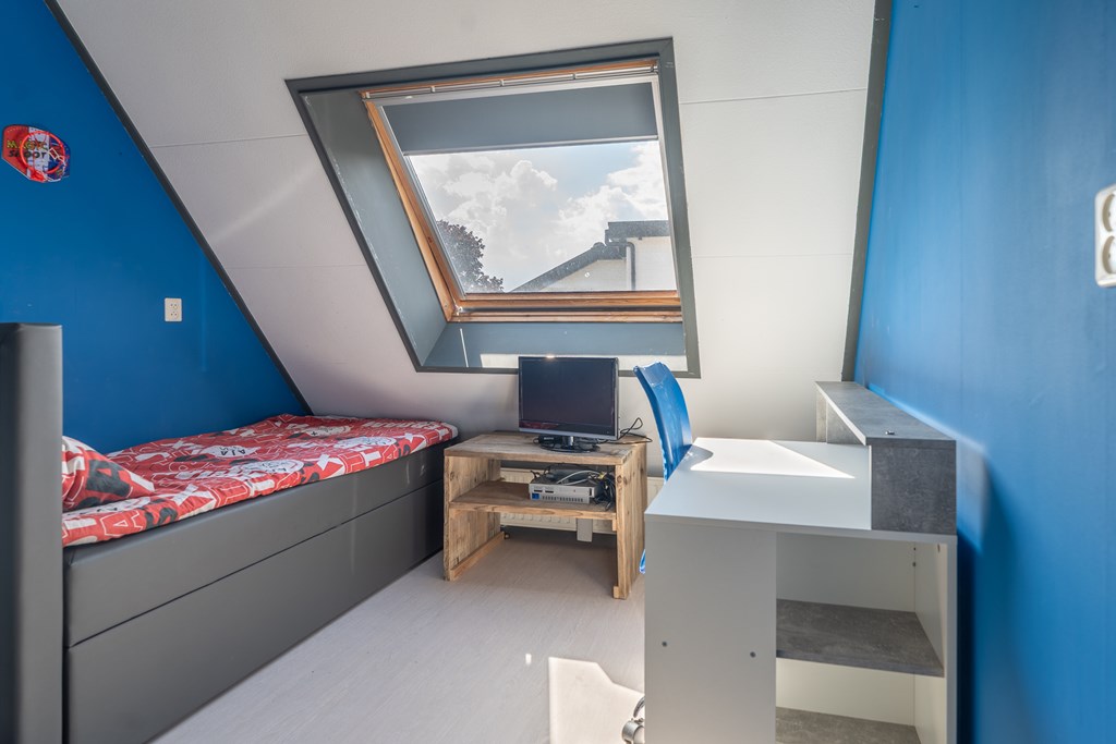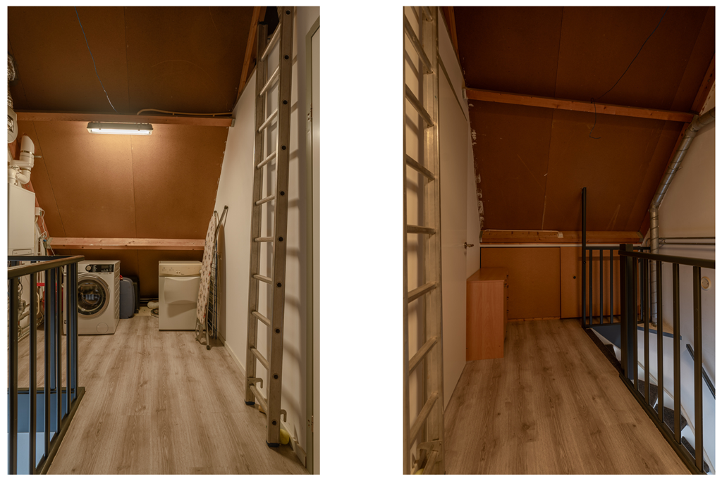 Via een vaste trap kom je op de tweede verdieping. Op de overloop is de wasruimte met aansluiting voor wasmachine en droger, evenals de cv-installatie. De vierde slaapkamer beschikt over een dakraam en extra bergruimte achter de knieschotten.