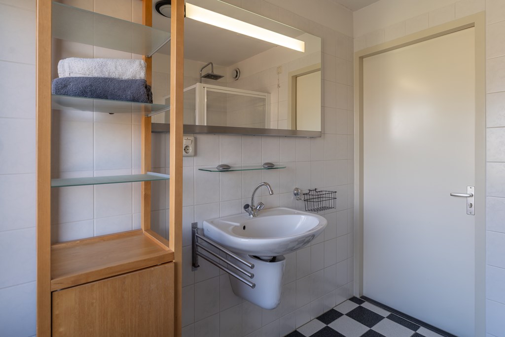 Vanaf de overloop zijn drie slaapkamers bereikbaar, waarvan twee aan de voorzijde en een aan de achterzijde. De badkamer is uitgerust met een douchecabine, wastafel en toilet. De verdieping wordt verwarmd via radiatoren.