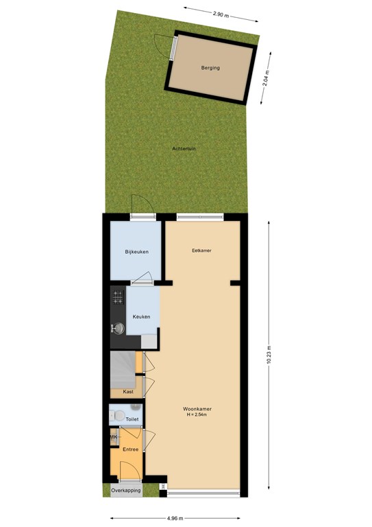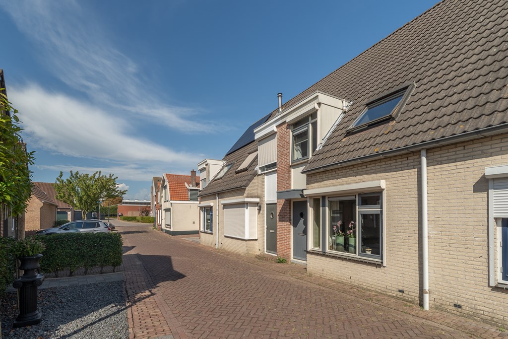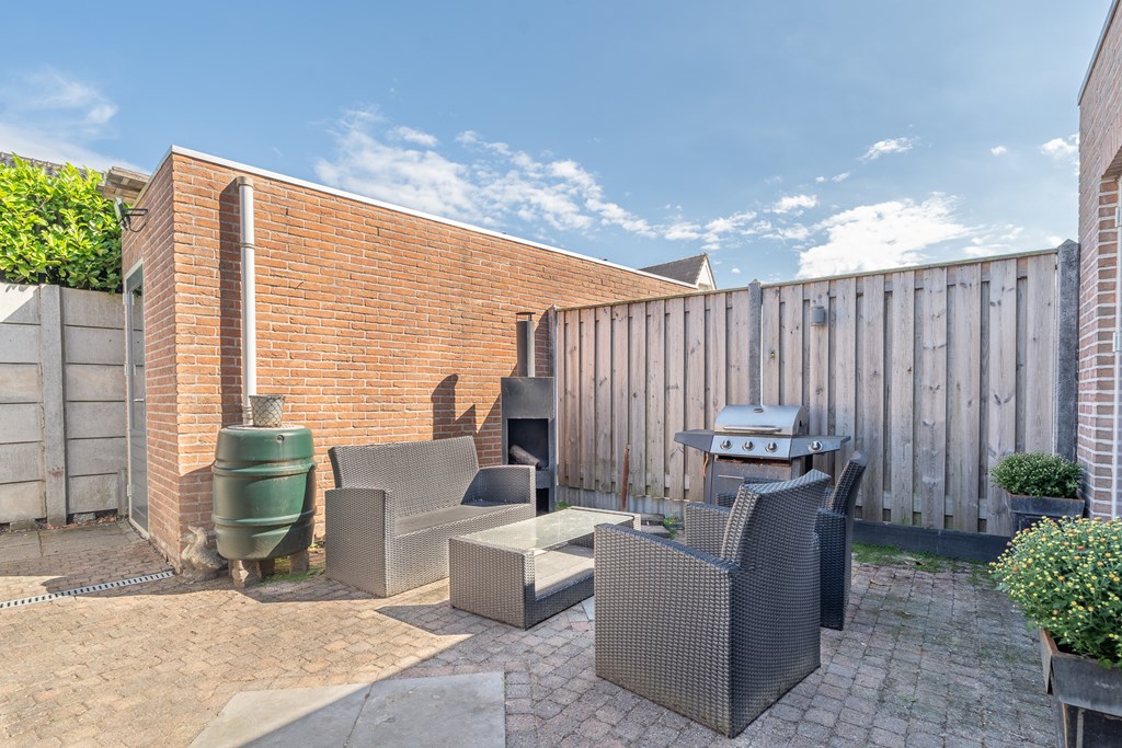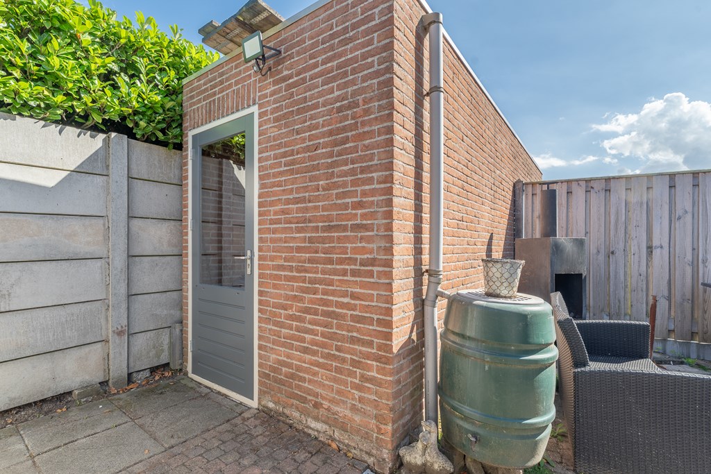 De achtertuin is onderhoudsvriendelijk aangelegd en biedt ruimte voor een gezellige zithoek. Achter in de tuin staat een stenen berging, ideaal voor fietsen of tuingereedschap. De tuin is bereikbaar via een achterom. Aan de voorzijde van de woning is voldoende openbaar parkeergelegenheid.