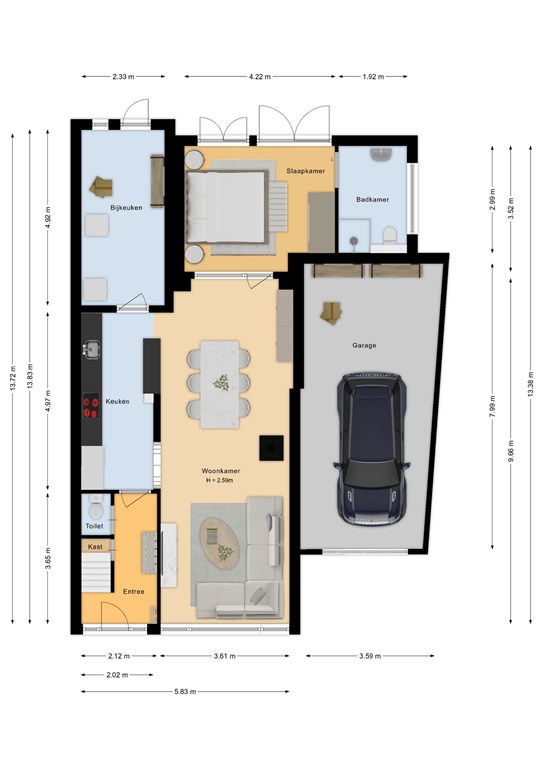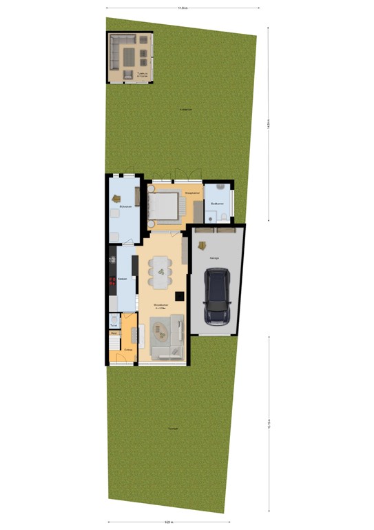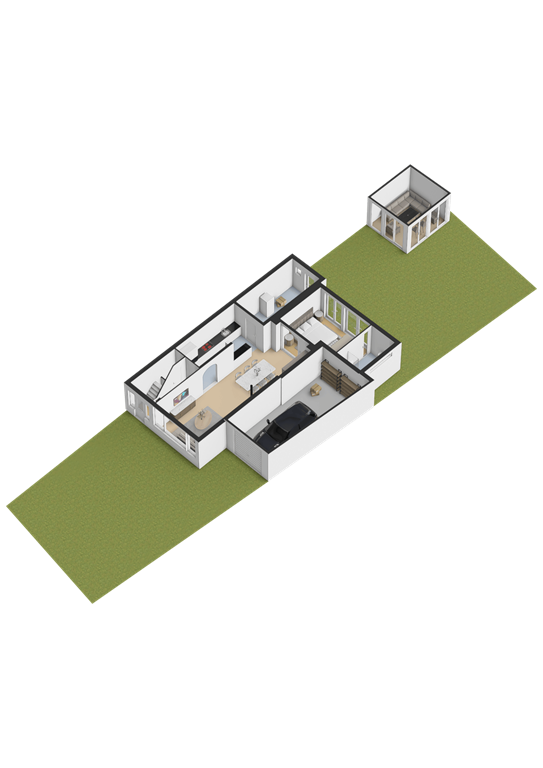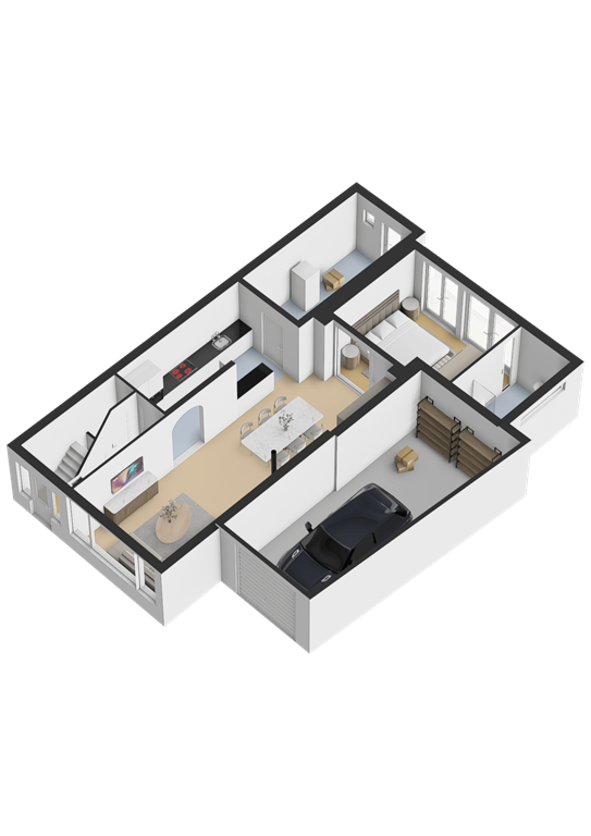 Daarnaast beschikt de woning over een aangebouwde garage, geschikt voor zowel het parkeren van een auto als voor opslag.