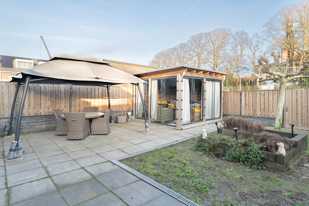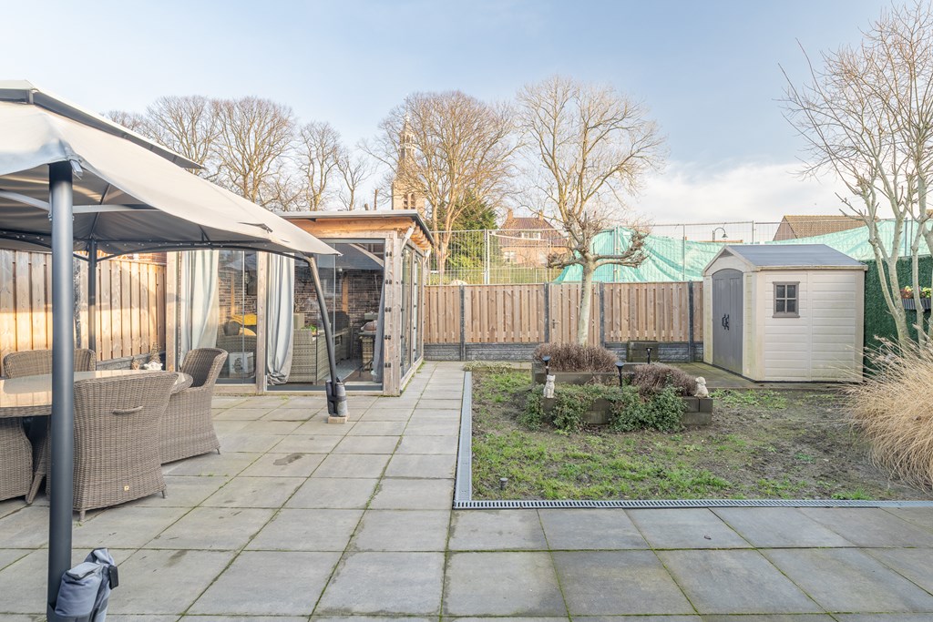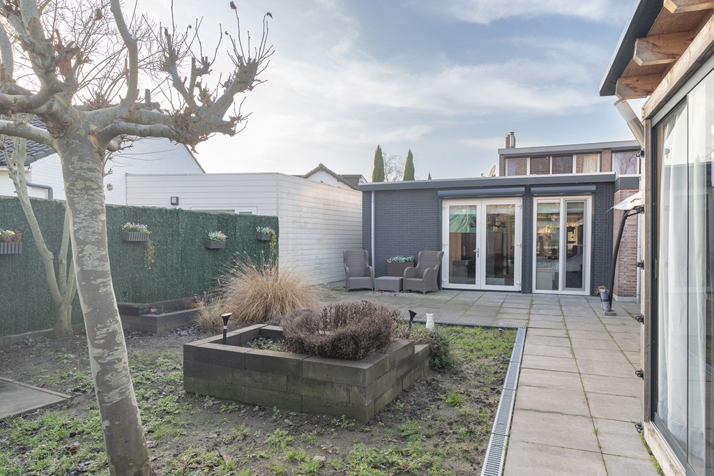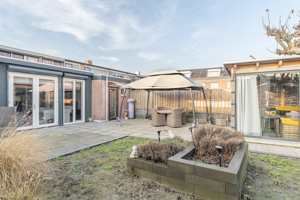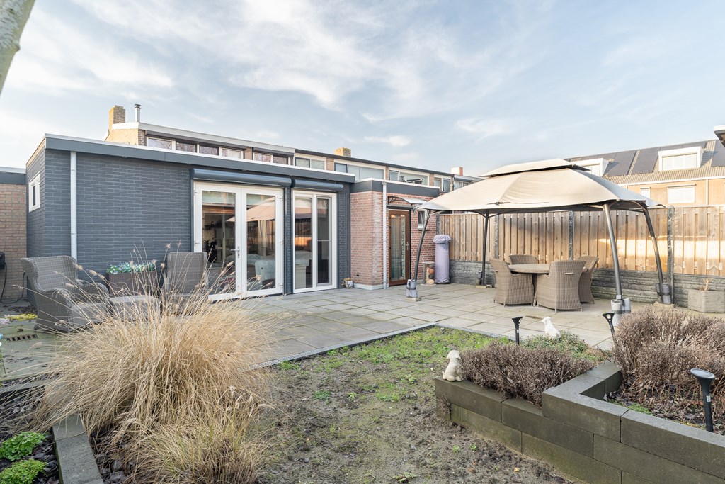 De woning beschikt over zowel een voor- als achtertuin. De ruime achtertuin is verzorgd aangelegd en biedt volop ruimte om te ontspannen en te genieten van het buitenleven. De tuin is ruim opgezet, beschikt over een achterom en is voorzien van een royale overkapping, waardoor er ook bij minder weer comfortabel buiten gezeten kan worden.