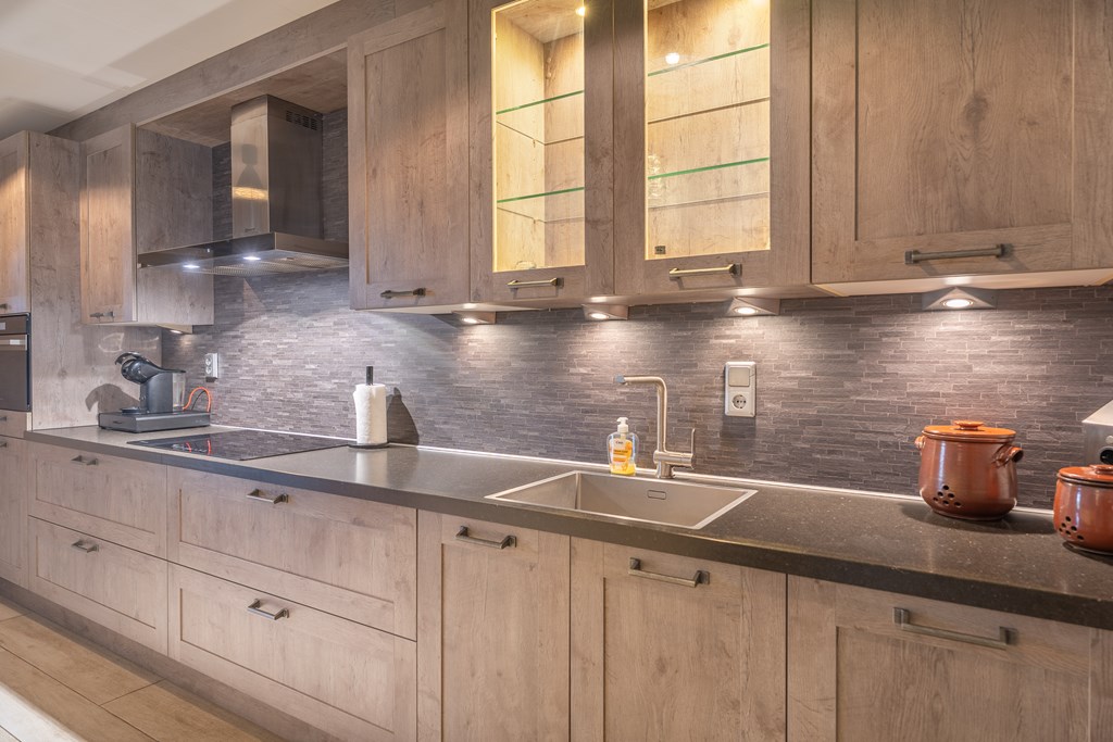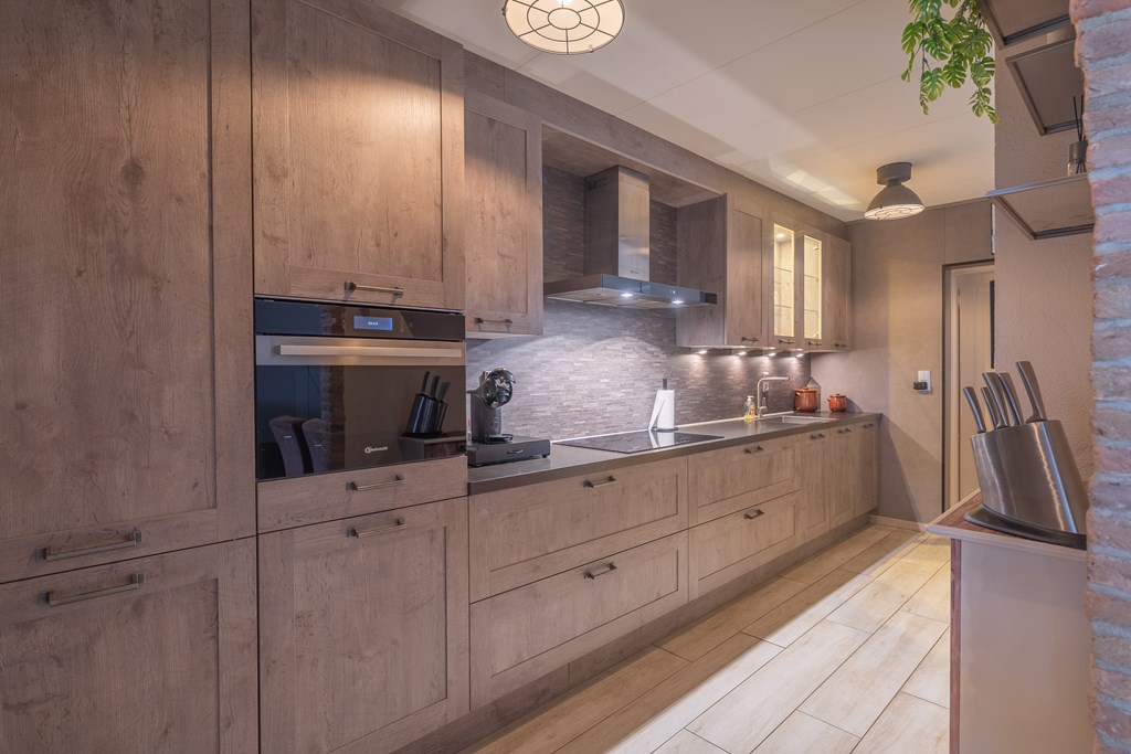 De keuken is ruim opgezet en voorzien van diverse inbouwapparatuur, waaronder een inductiekookplaat en combi-oven. Dankzij de prettige maatvoering is er voldoende werk- en kastruimte, waardoor de keuken comfortabel is in dagelijks gebruik.