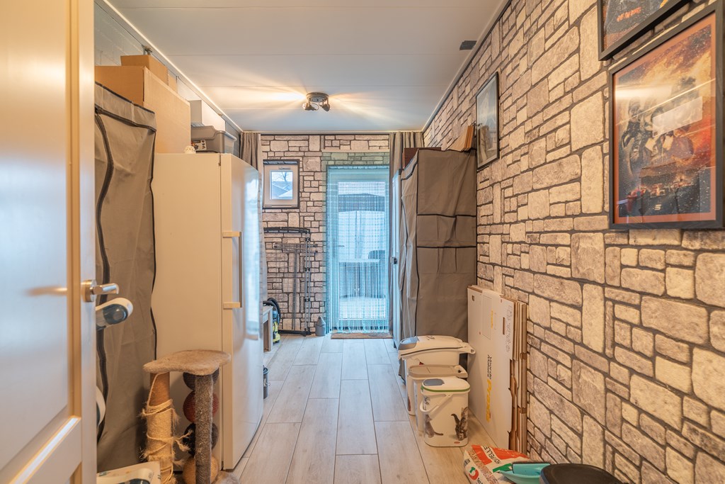 Aansluitend bevindt zich de zeer ruime bijkeuken, die naast extra bergruimte ook plaats biedt aan witgoedaansluitingen en overige huishoudelijke voorzieningen.