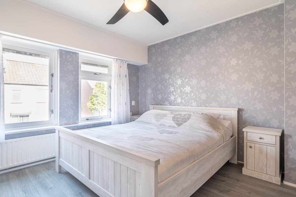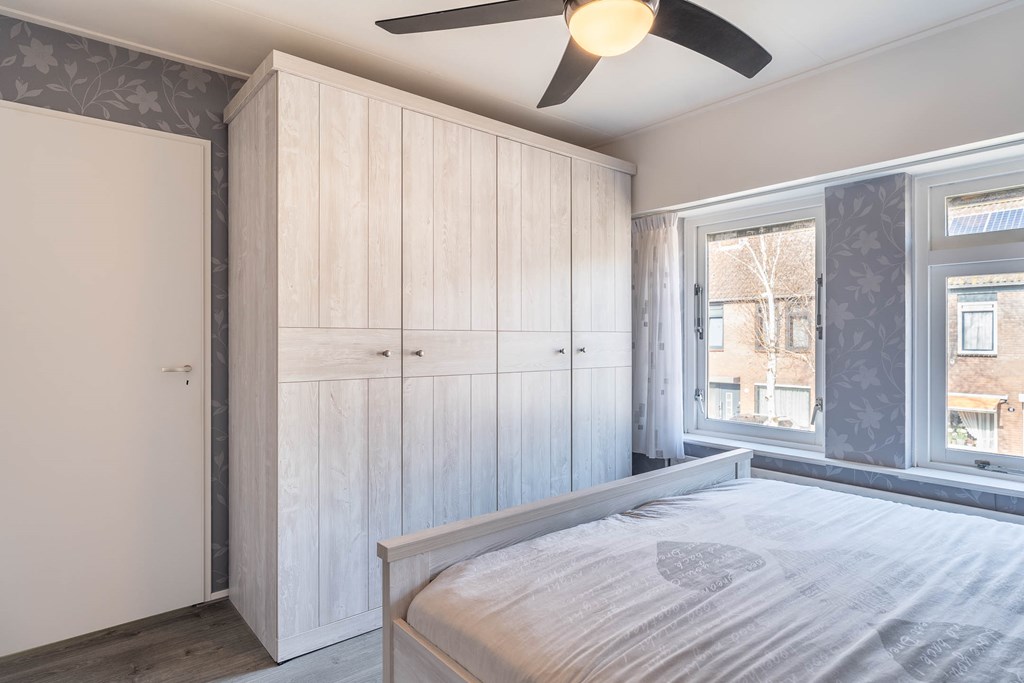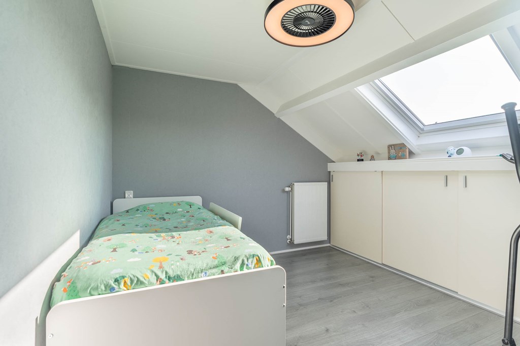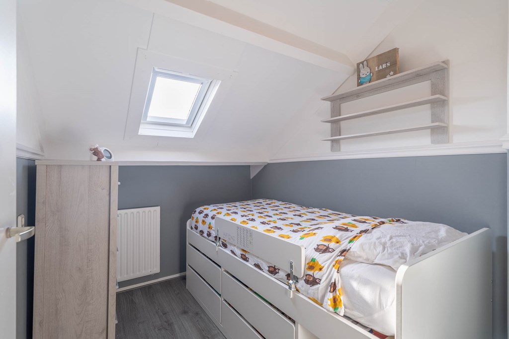Er zijn twee ruime slaapkamers en één kleinere slaapkamer aanwezig. De hoofdslaapkamer is gelegen aan de voorzijde van de woning en beschikt over twee ramen, wat zorgt voor een prettige lichtinval. De tweede ruime slaapkamer is voorzien van een dakraam. De derde, kleinere slaapkamer beschikt eveneens over een dakraam en is bijvoorbeeld geschikt als kinder-, werk- of hobbykamer.