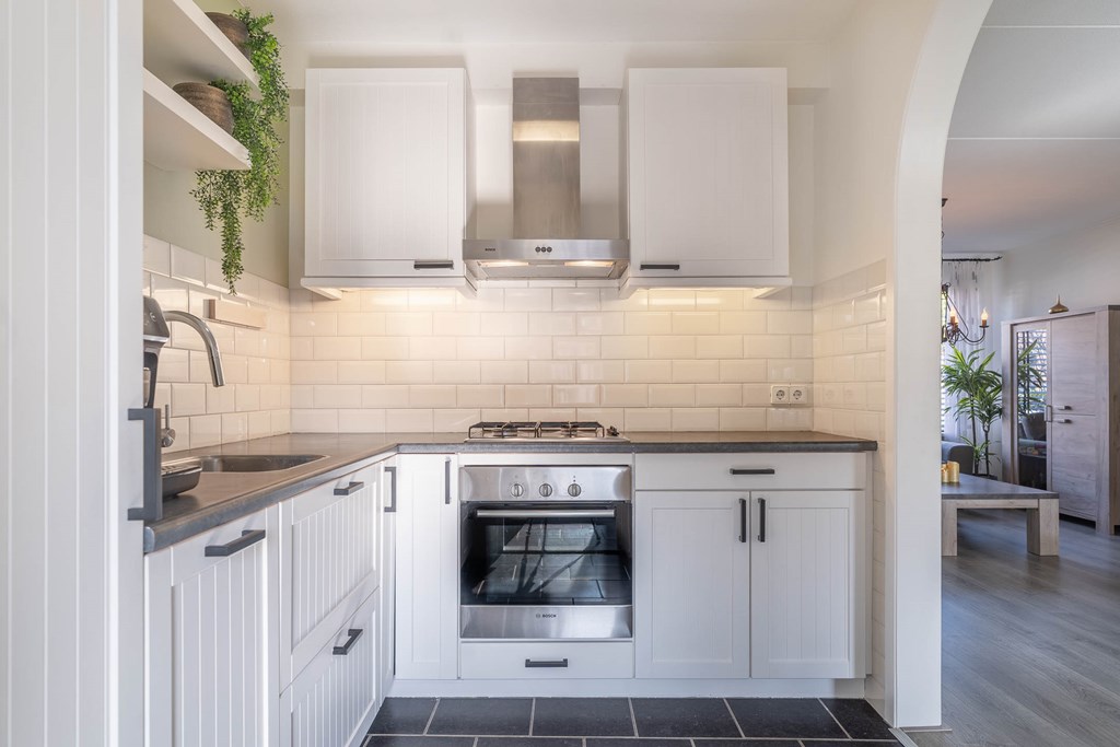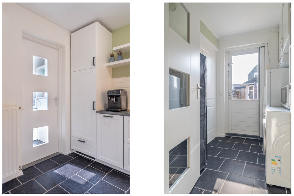 De keuken bevindt zich aansluitend aan de woonruimte en beschikt over diverse kastruimte en inbouwapparatuur. Vanuit de keuken komt u eerst in de bijkeuken. Hier bevinden zich de aansluitingen voor het witgoed en hangt tevens de cv-ketel. Vanuit de bijkeuken heeft u vervolgens toegang tot de achtertuin.