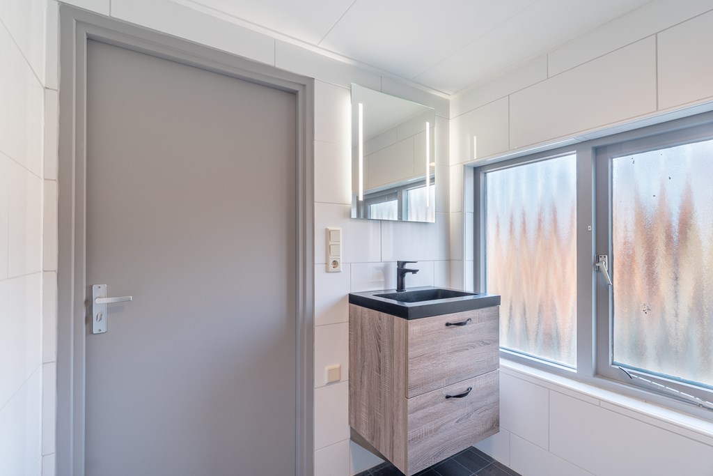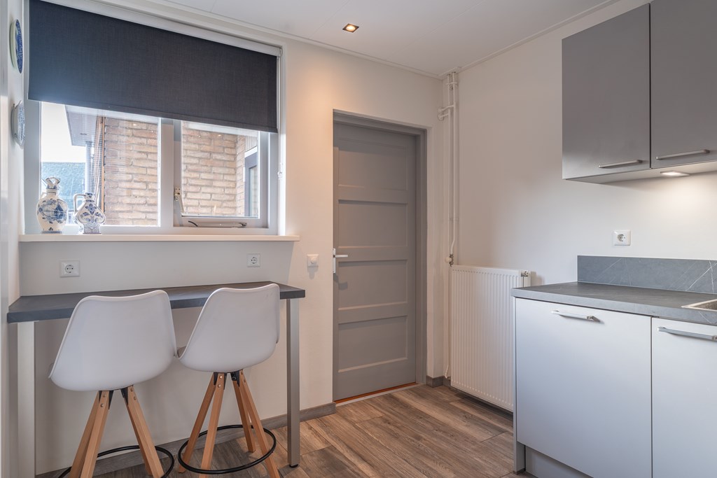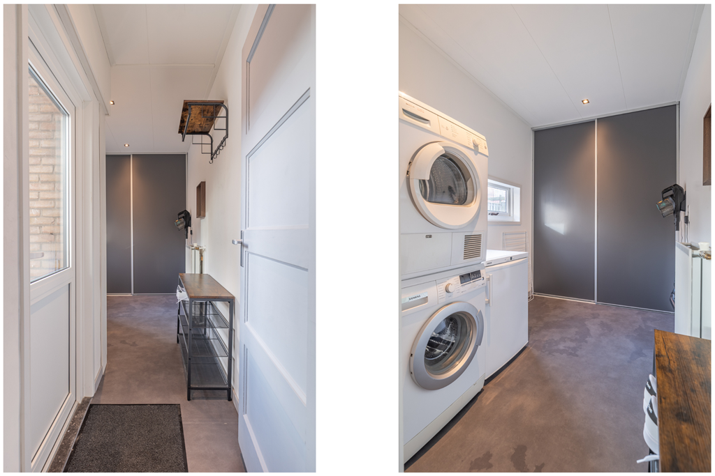 Aan de achterzijde bevindt zich de bijkeuken met de wasopstelling. Vanuit hier is er toegang tot de achtertuin.