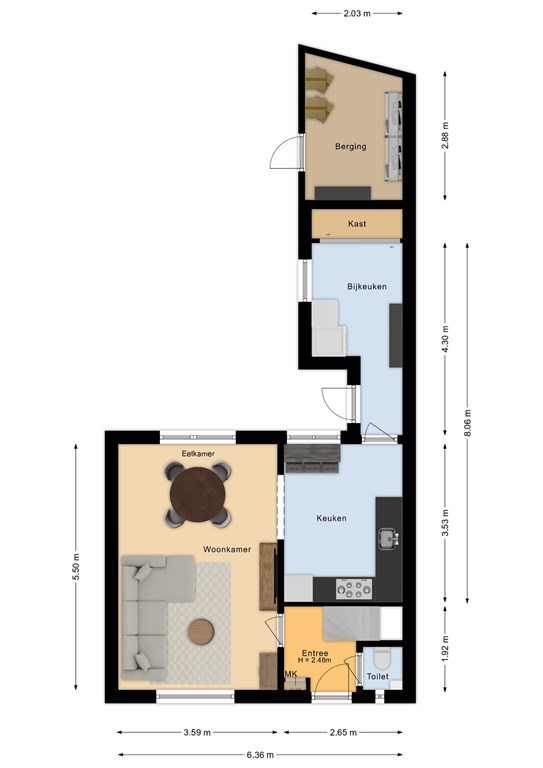 • Berging met elektra, direct aan de woning