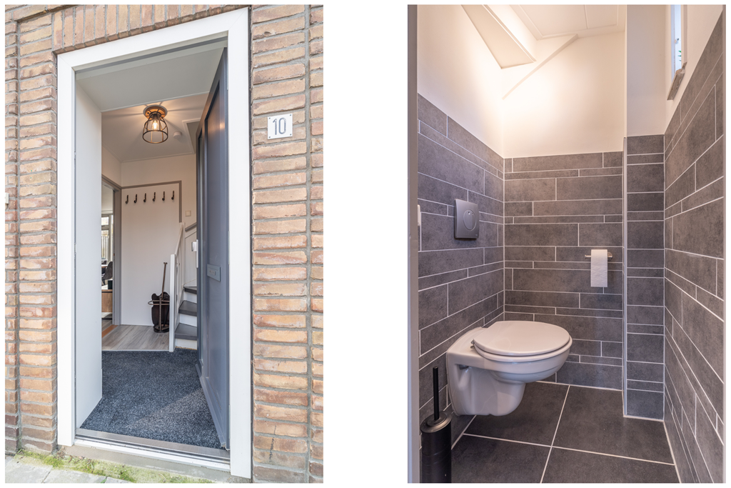 Via de entree komt u binnen in de hal met meterkast, toilet en trapopgang naar de eerste verdieping. Vanuit de hal bereikt u de woonkamer.